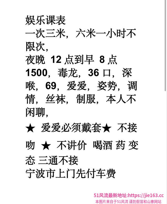 凡是有要求路费/定金/保证金/照片验证/视频验证等任何提前付费的行为,千万不要上当。同时也请注意仙人跳,在寻欢前不要露富和带过于贵重随身物品。本站为分享信息并不对寻欢经历负责,碰到有问题的信息,请及时举报给我们删除信息。部分小姐姐较为敏感,所以请在联系对方时不要透露此条信息来源。https://bz904.cc/item/213387
