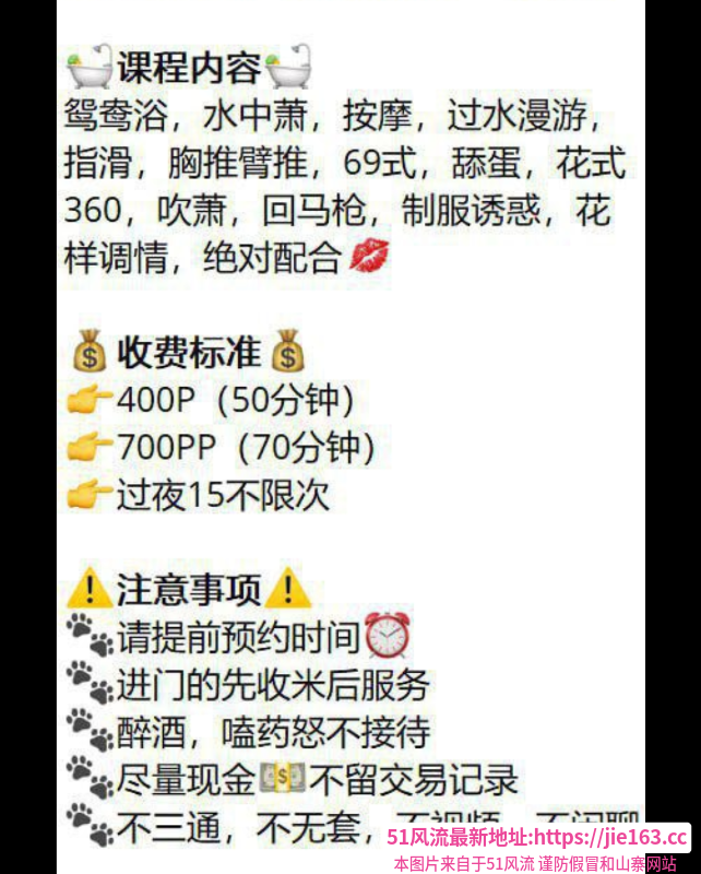 凡是有要求路费/定金/保证金/照片验证/视频验证等任何提前付费的行为,千万不要上当。同时也请注意仙人跳,在寻欢前不要露富和带过于贵重随身物品。本站为分享信息并不对寻欢经历负责,碰到有问题的信息,请及时举报给我们删除信息。部分小姐姐较为敏感,所以请在联系对方时不要透露此条信息来源。https://bz904.cc/item/214505